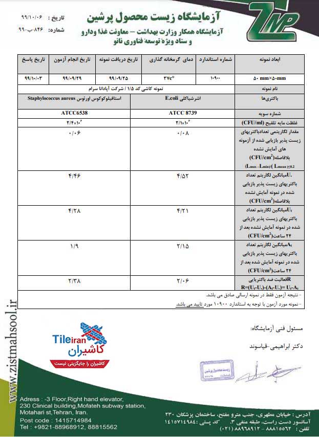 نتیجه آزمایش کاشی و سرامیک آنتی باکتریال: