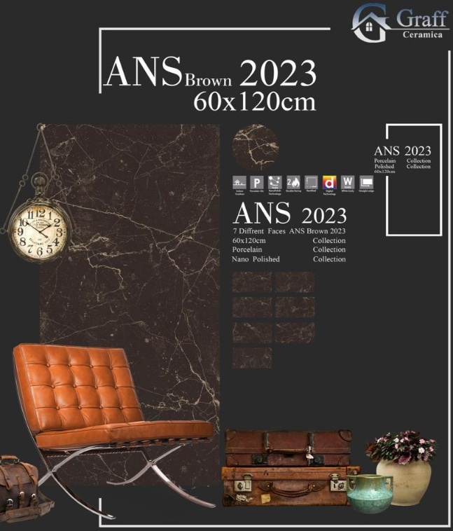 ANS Brown 2023 - کاشی آ ان اس قهوه ای پولیش 120*60 - گراف سرامیک Graff Ceramic