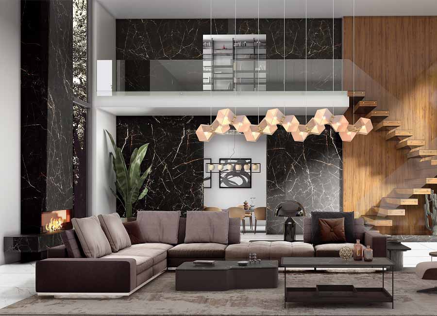 سرامیک سایز هایپرانو مشکی با خط طلایی همچنین برای دیوار لابی ساختمان, کف لابی و اسلب نمای خارجی ساختمان استفاده می شود.