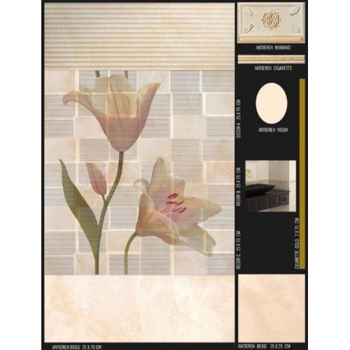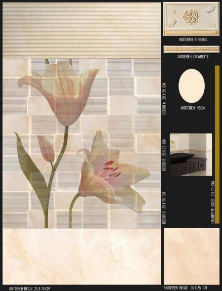 برند بست تایل را می توان جز مدل هایی دانست که با تفکری خاص سعی بر این دارد که آن دسته از طرح ها و مدل ها را تولید کند که سایر شرکت ها در آن تنوع کمتری به خرج داده اند. پس بی دلیل نیست که افراد خاص به سوی این برند سوق می یابند. طرح آنتیره جز این گونه تولیدات است که پوستری بی نظیر را برای ما بر روی دیوار به نمایش می گذارد. طرح پوستر در دو طیف رنگی آنتیره بژ و آنتیره طوسی تولید گشته و هر نقش کامل آن متشکل از سه عدد کاشی می باشد. طرح پوستر که یک نوآوری جدید در عرصه کاشی و سرامیک می باشد. به خودی خود یک اثر هنری بوده که می توان علاوه بر رفع نیاز ما به کاشی و سرامیک یک اثر زیبا را به منزل ما هدیه دهد.مدل آنتیره علاوه بر پوستر طرح های دیگری نیز دارد که می توان به امبینت آنتیره طوسی و بژ با نگین، و آنتیره بژاستراکچر اشاره نمود.این مدل در ابعاد 70*25 بوده و البته مدل 25*25 آن نیز موجود بوده همچنین مکمل های که کامل کننده زیبایی طرح هستند هم تولید کشته که می توان به نگین و ریبوند و ... اشاره کرد .