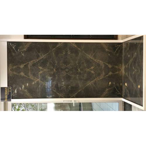 همانگونه که در تصویر مشخص است از کنار هم قرار گرفتن چهار قطعه سرامیک تصویری زیبا شکل می گیرد. که در صنعت کاشی و سرامیک بوک مچ نام دارد. بوک مچ، به نوعی قرارگیری سنگ های با ابعاد بزرگ در کنار هم گفته می شود که در طی آن رگه های سنگ و نقوش آن در امتداد هم قرار می گیرند که بسته به فضای مدنظر می توان دو و یا چهار قطعه سنگ اسلب را بوک مچ نمود. امروزه تنوع در ساختاراین کار کاملا سلیقه ای بوده و طراح با هنر و نظر خود می تواند با قرار دادن اسلب های مختلف در کنار یکدیگر اشکال مختلف ایجاد نماید که هر یک منحصر به فرد و تکرار ناشدنی می باشند. برای همه ی دست اندر کاران کاشی و سرامیک تجربه شده است که بعضی از سنگ ها به تنهایی زیبا نیستند و به عنوان سنگ های با طرح شلوغ شناخته می شوند ولی زمانیکه با صرف سلیقه و ذوق در کنار هم قرار گیرند تبدیل به یک تابلو هنری زیبا می شوند. انتخاب طرحی زیبا در بین تمامی طرح های موجود در بازار کار سختی می باشد اما وقتی طرحی با طرف فکر و هزینه تولید می گردد می توان بسیار خاص جذاب و دلپذیر باشد. افرادی که دنبال طرح هایی هستند که محیطشان را متفاوت کنند طرح های بوک مچ تکسرام می تواند انتخابی یرکانه باشد. زمانی می توان اقدام به بوک مچ کردن نمود که سنگ دارای خطوط و طرح های شاخص باشد مانند خطوطی سیاه در بستری به رنگ سفید و در هنگام نصب باید به نحوی در کنار یکدیگر قرار بگیرند که به صورت سر به سر در پهلوی هم قرار گرفته تا نقش سنگ قطع نشود و طرح به صورت پیوسته امتداد یابد و حاصل منظره ای زیبا و متقارن ایجاد خواهد شد که در طبیعت نیز نمونه های مشابه زیادی همچون باله ای پروانه و یا گلبرگ های متقارن یک گل وجود دارند. زنده بودن و طبیعی بودن محیط را می توان در طرح های بوک مچ به وضوح لمس نمود.