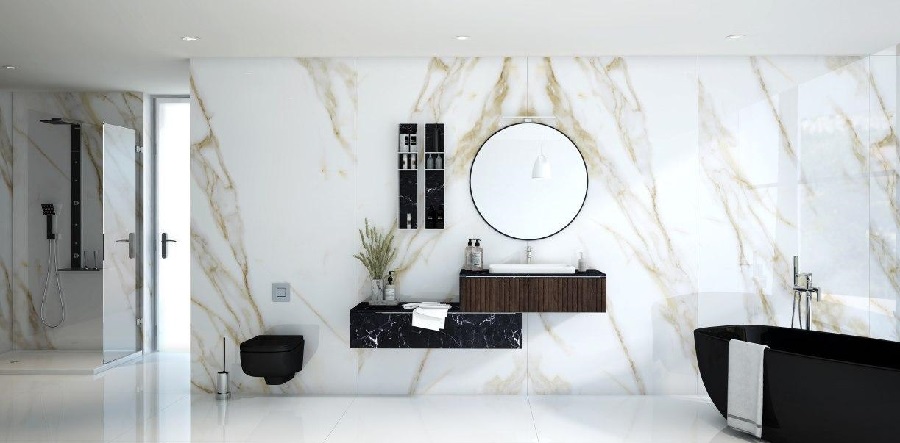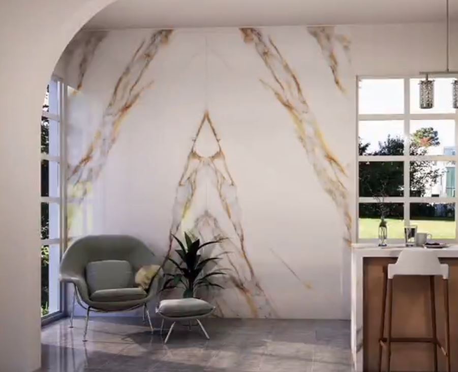 کلکته گلد Calacatta God - سرامیک اسلب بوک مچ کلکته گلد مدل کار شده - فاوانیا Favania
