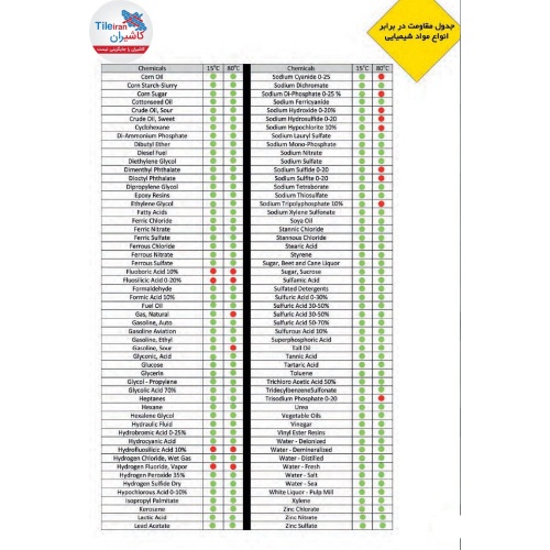بر اساس استاندارد ملی شماره 3051 (ویژگی های کاشی ضد اسید)