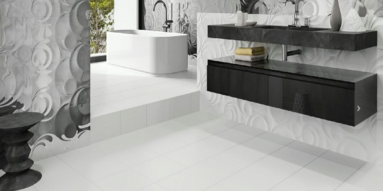 کاشی دیامنتا سفید براق طرح دار یکی از ست های جدید برای دیوار سرویس بهداشتی می باشد .