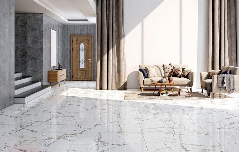 | سرامیک کف, سرامیک کف کافی شاپ, سرامیک کف پذیرایی, سرامیک کف سفید رگه دار | |
