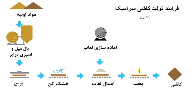 به طور خلاصه پروسه تولید کاشی را در شماتیک زیر مشاهده می نمایید :